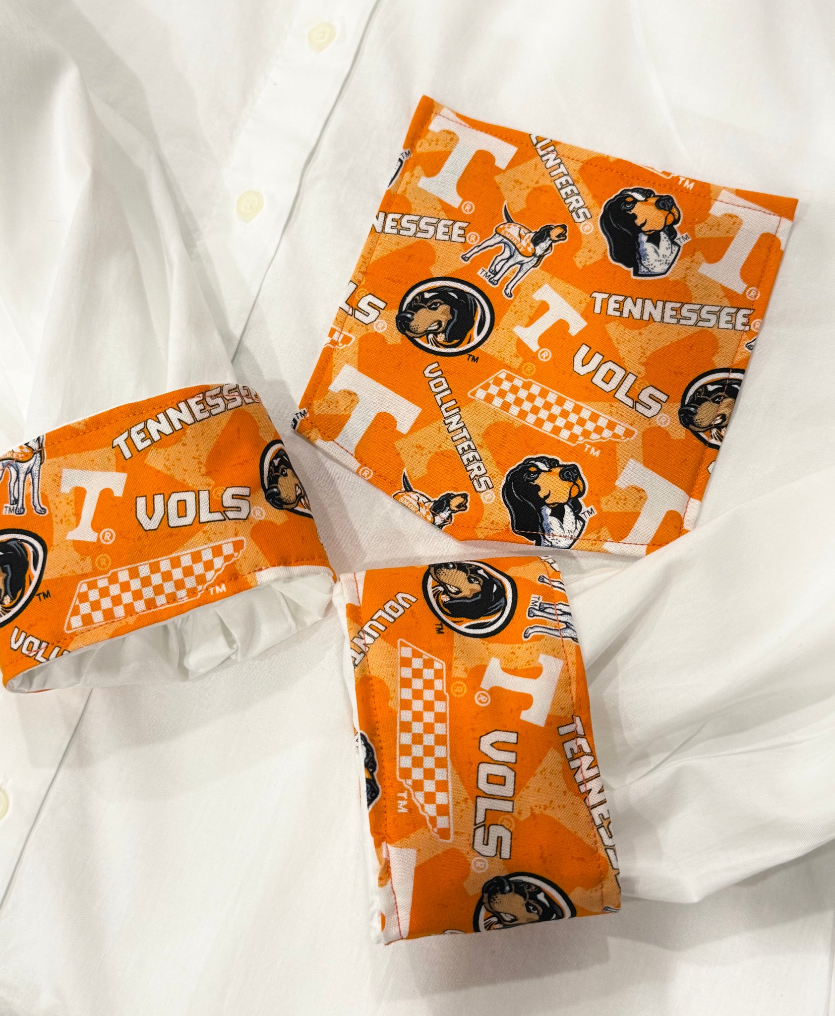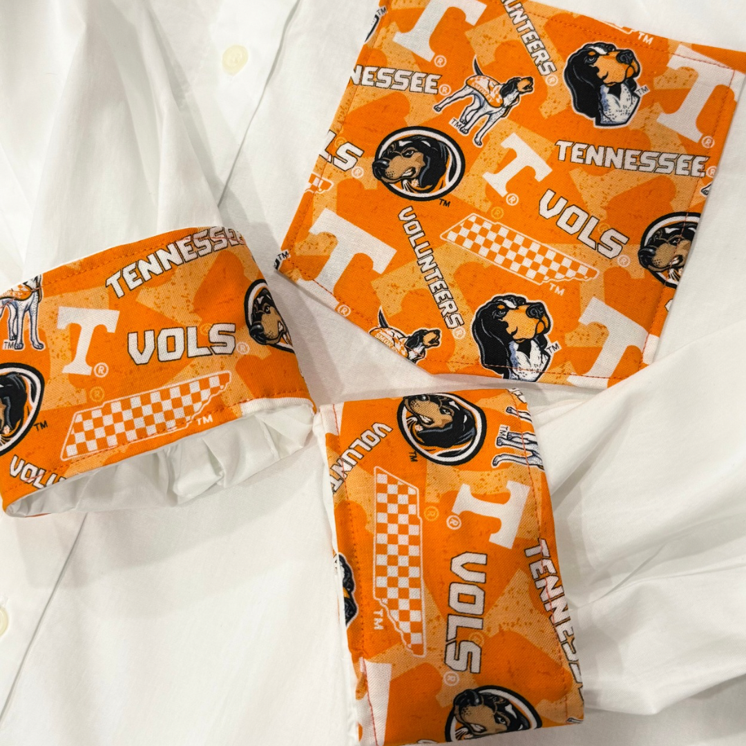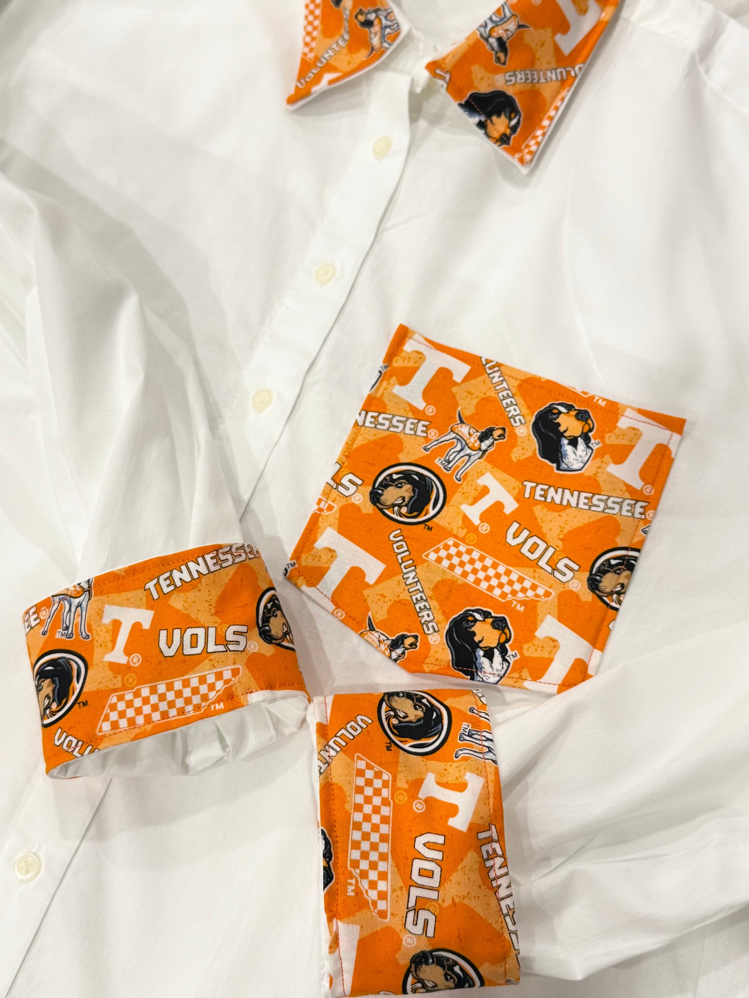 Oversized boyfriend cut button down shirt. Your favorite team fabric on cuffs and pocket. Pocket is sewn shut.