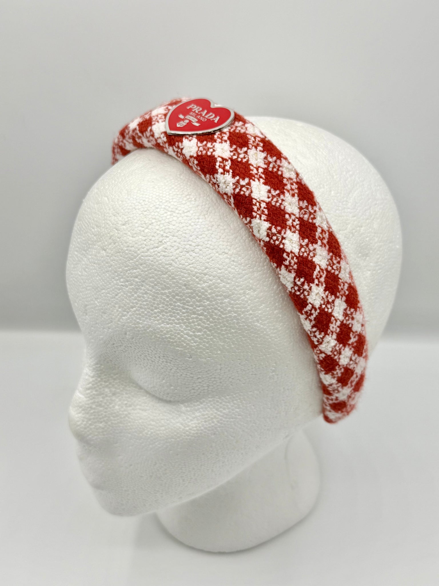Tweed headband with repurposed bag charm. Made on our comfort fit 1” headband.