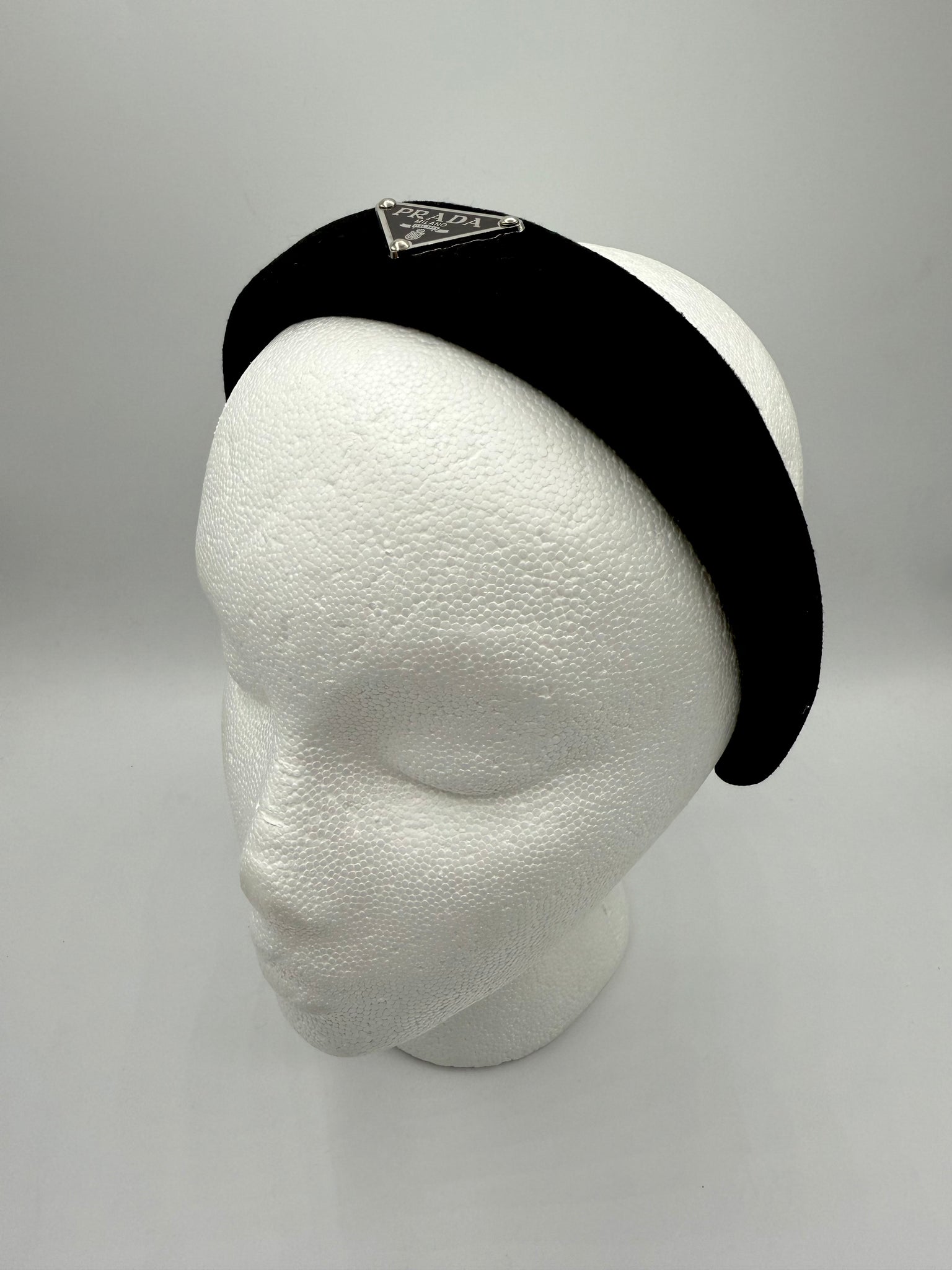 Cotton headband with repurposed bag charm. Made on our comfort fit 1” headband.